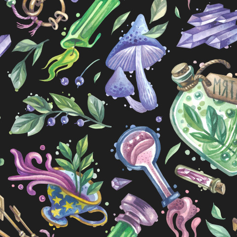 грибы гриб магия волшебство колдовство волшебник волшебница ведьма колдун лист листья свеча свечи колба зелье мята черника ключи чашка чай напиток ключи ключ кристалл кристаллы