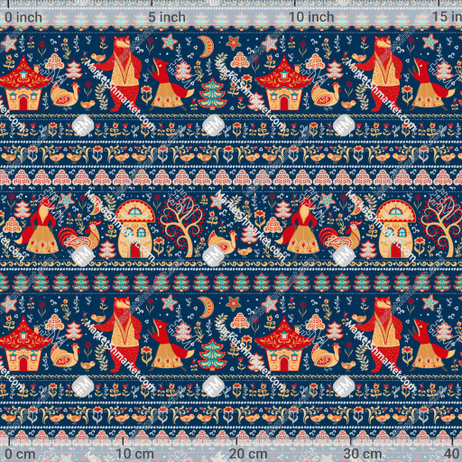 новогодний, новый год, животные, полосы, салфетки, скатерть, бордюр, дом, лиса, медведь, русский, орнамент, синий фон, красный, лес, сказка, петух, птицы, животные, детский, яркий, праздник, зима, цветочный