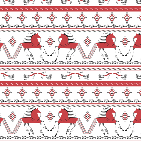 лошадь, птица, орнамент, Мезенская роспись, Новый год, праздник, промыслы