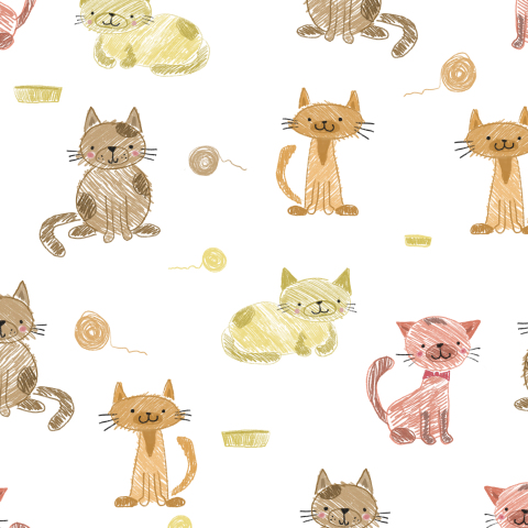 котики, кошка, питомец, котенок, карандаши, рисунок, детский, милый, забавный