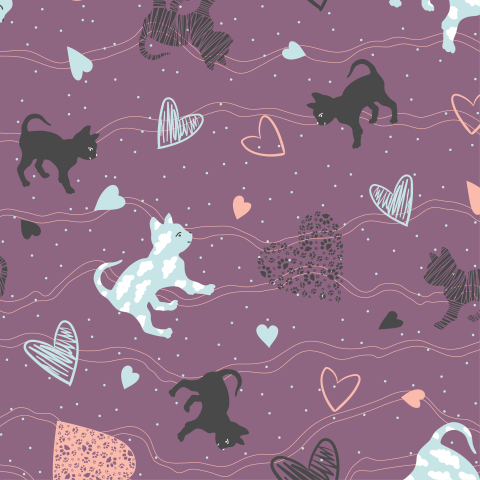 Милые котята и сердечки