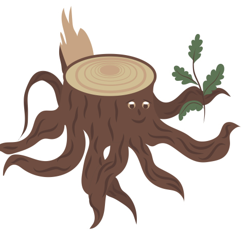 Милый лесной пенек персонаж старый дерево росток дуб ребенок мама защищать