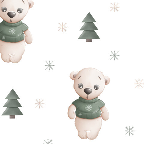 Мишка с елкой и снежинкой