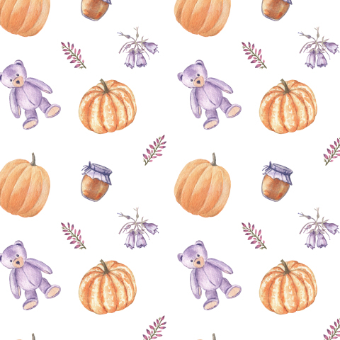 Мишки и тыквы на белом ( Bears and Pumpkins on white)