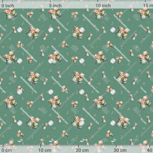 Мишки с цветами на мятном by Лиса Алиса 652 DPI