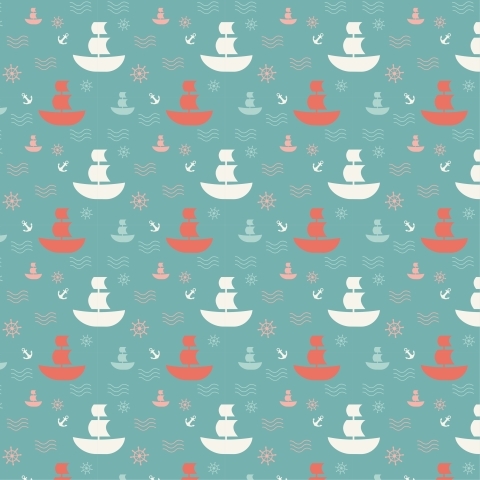 Морской фон. Корабли, штурвалы, якоря и волны.