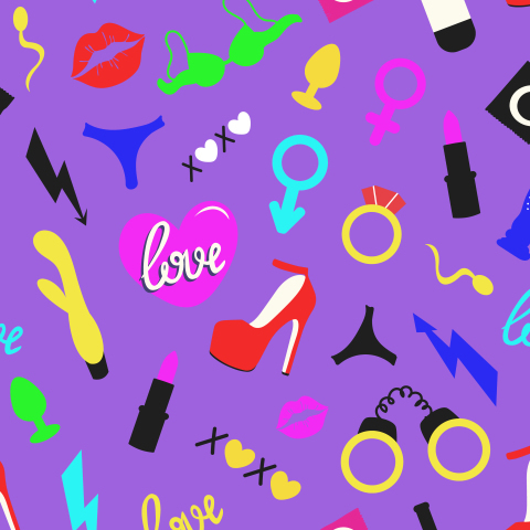 Неоновый паттерн с секс-игрушками