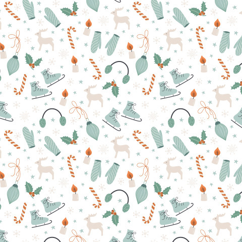 Новогодний принт в ретро стиле на белом фоне