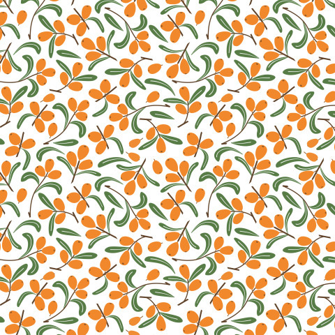 облепиха sea-buckthorn ягоды berry листья leaf ягодка листок оранжевый orange зеленый green белый white цветочный ягодный нежный паттерн узор упаковочная праздничная лето summer