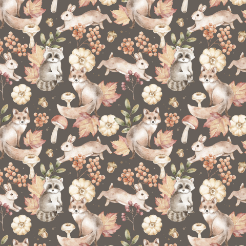 осень, акварель, лиса, енот, зайцы
