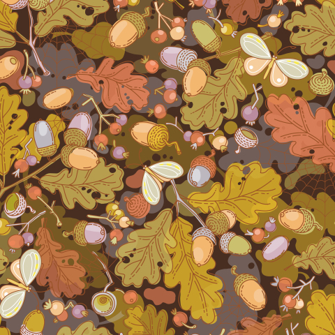 Осень. Опавшие листья, желуди и последние бабочки