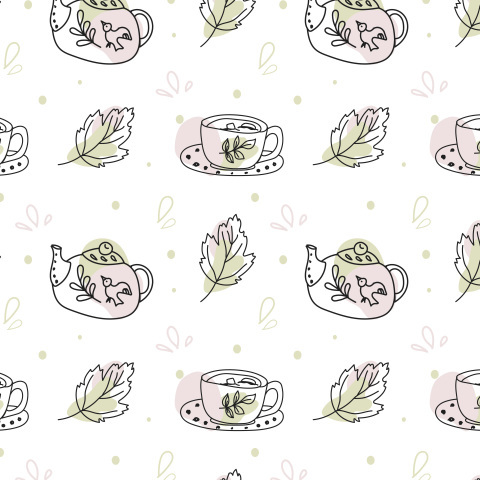 Осенние листья и милый чайник с чашкой