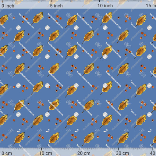 Осенние листья и ягоды рябины на голубом фоне by tata_kutischeva 714 DPI