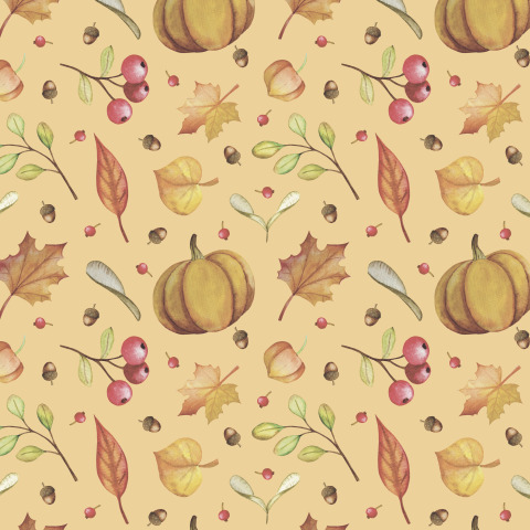 Осенние ягоды и плоды на оранжевом. Акварель