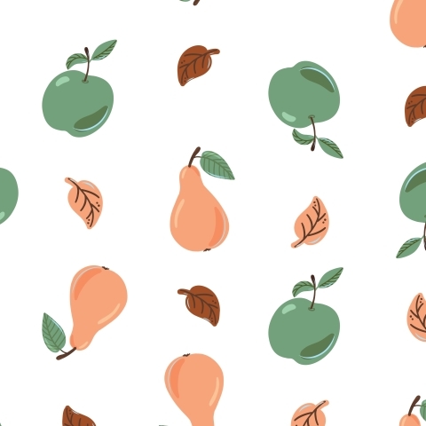 яблоко, груша, белый фон, скатерть, интерьерные, осенний, нарисованный