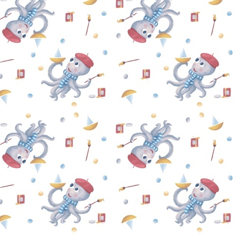 Осьминог кисточка кораблик краска баночка художник берет рисует детское