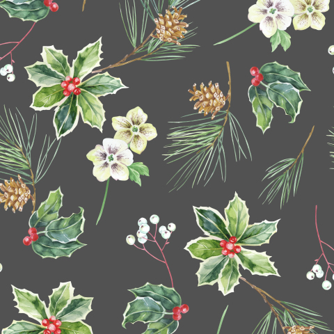 Остролист, сосна и морозник, темный фон