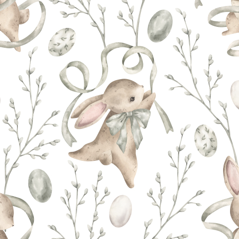 акварель, пасха, рисунок, зайчик, пасхальный кролик, пасхальные яйца, милый, нежный, веточки, ленты,