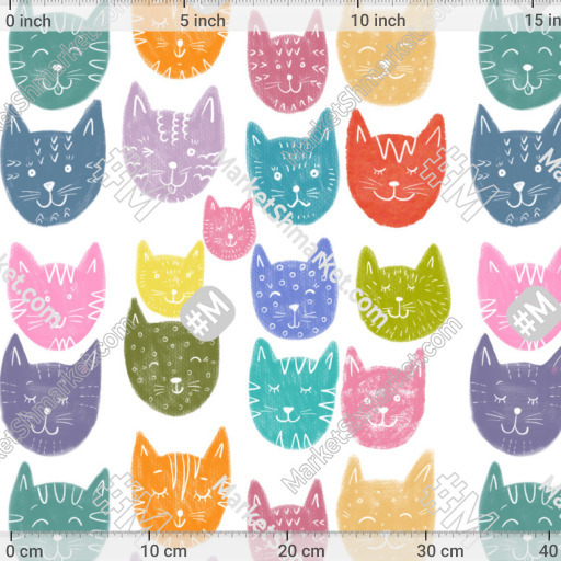 Паттерн Веселые разноцветные котики на белом фоне by Yovin 227 DPI