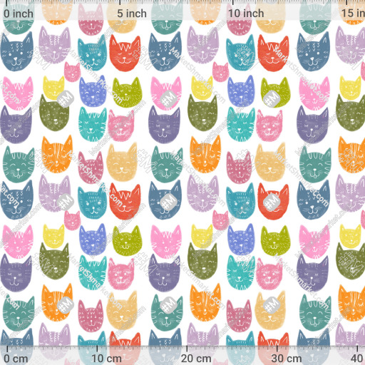 Паттерн Веселые разноцветные котики на белом фоне by Yovin 469 DPI