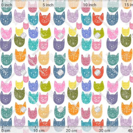 Паттерн Веселые разноцветные котики на белом фоне by Yovin 476 DPI