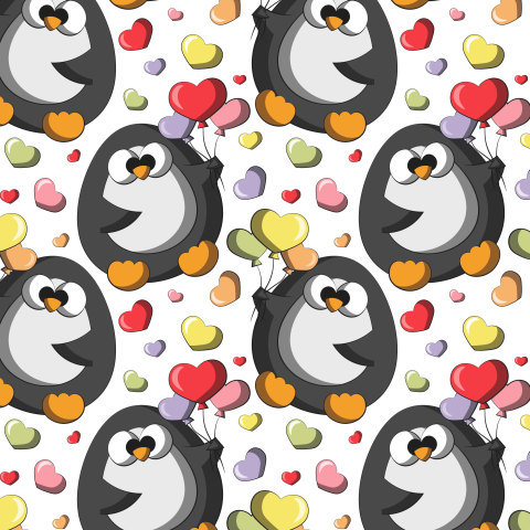 Пингвин с воздушными шариками в виде сердец