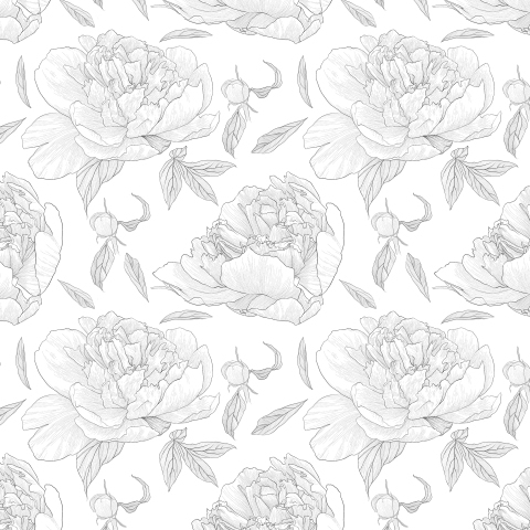 Пионы и бутоны белый фон