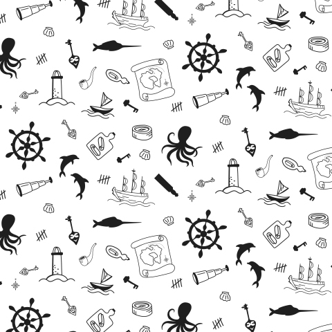 пираты, корабль, маяк, море, штурвал, морские животные, морская тема, пиратская тема, парусник, карта сокровищ, минималистичный, приключения, путешествия,