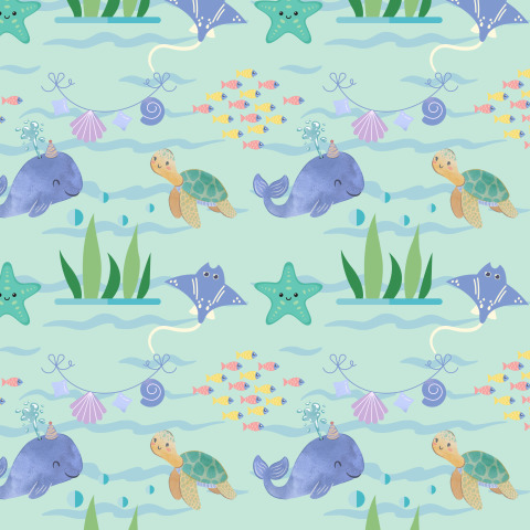 Подводный мир океан черепаха кит ракушки скат рыбки волны море водоросли