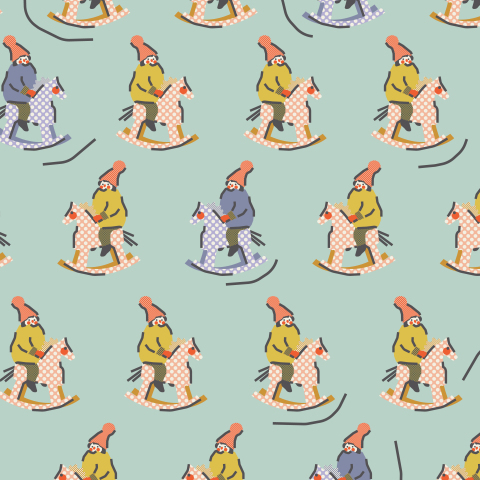 Принт с детьми на лошадках-качалках