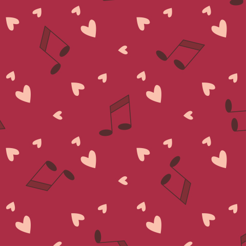 Принт с сердечками и нотами