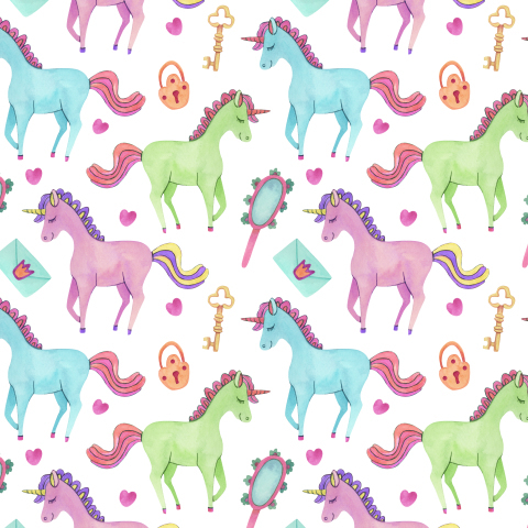 Разноцветные единороги акварельный принт