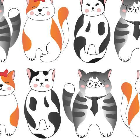 Разные кошечки на белом фоне.