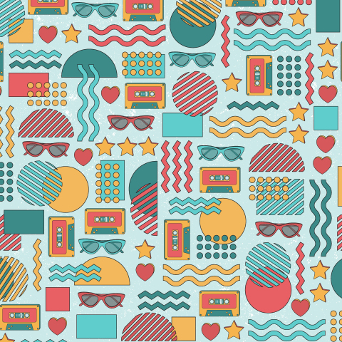 ретро, 90-е, летний, пляжный, аудиокассеты, яркий, голубой, красный, ностальгия, детский, желтый, курточная, геометрия, 80-е, текстура, предметы, детский