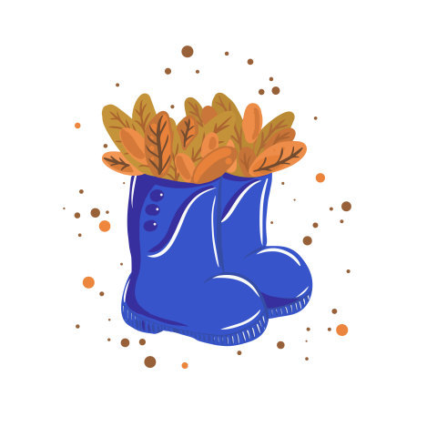 осень, куртка, сумка, листья, листопад, дождь, резиновые сапоги, векторное изображение, иллюстрация, идея, красочно,