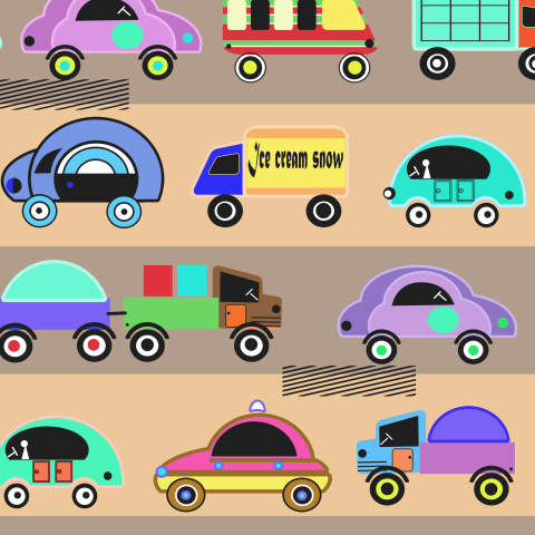 Рисунок с разноцветными машинками ретро для мальчиков