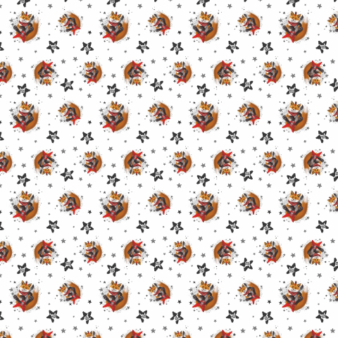 Рок Лис с электрогитарой на белом фоне со звёздами