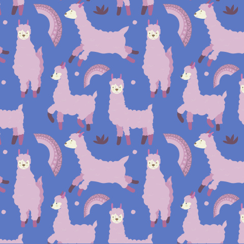 Розовая лама с радугой на синем фоне