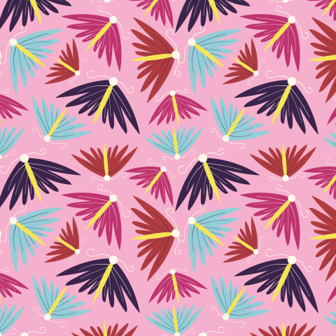 Розовый паттерн с цветными бабочками