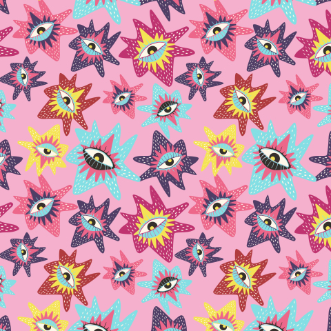 Розовый яркий паттерн с глазами в стиле диско