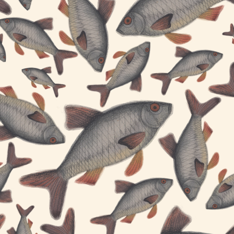 рыбы, плотва, акварель, акварельный, черный, рыбалка, озеро, море, река, вода, охра, серый