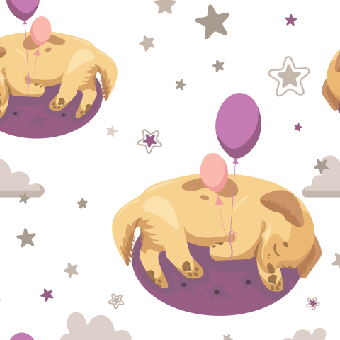 Собака, щенок, милый, облака, звезды, детская, ребенок, малыш, спальня, шарики, сон, животные, питомцы