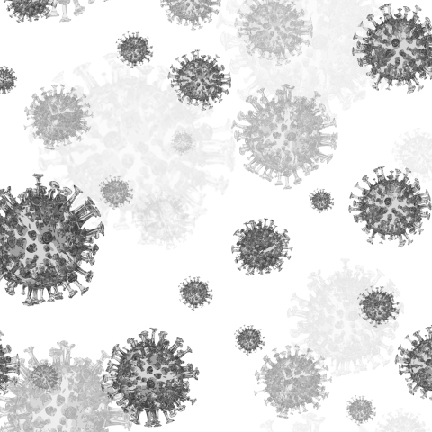 Серый Коронавирус летает на белом фоне