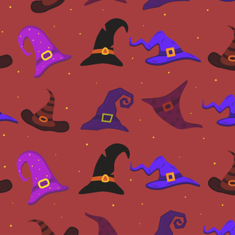 Шляпы ведьм на бордовом фоне