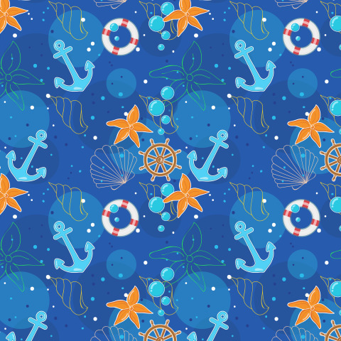 Синий морской узор паттерн якорь ракушки штурвал вода пузыри