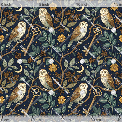 Сова, совы, птицы, ключи, готика, Моррис, цветочный, цветы, плательный, современный, стильный, необычный, бельевой, бесшовный