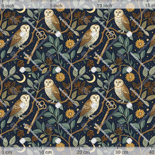 Сова, совы, птицы, ключи, готика, Моррис, цветочный, цветы, плательный, современный, стильный, необычный, бельевой, бесшовный