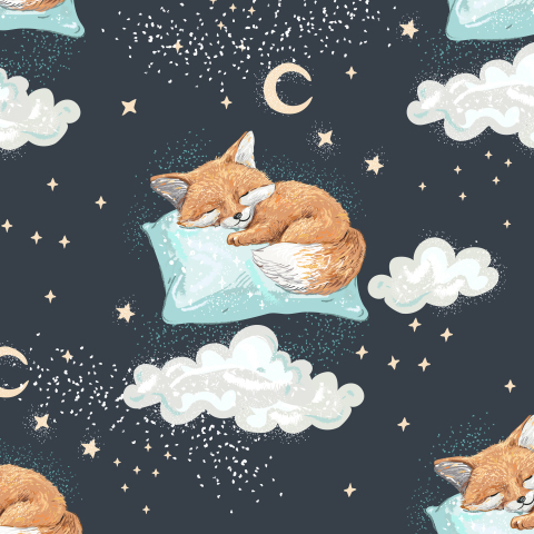 паттерн лисичка лисёнок сон подушка звёзды месяц облака детский ночной пижама бесшовный