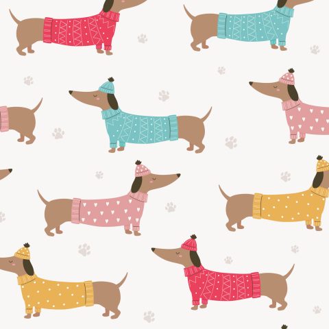 Такса в свитере и шапке