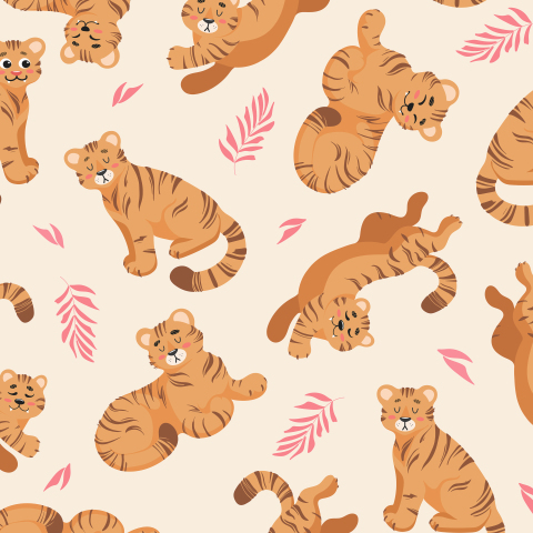 тигр, животное, тропический, сафари, милый, пальма, монстера, листья, лев, зоопарк, кошка, природа, африка, дети, пижамы, животные, белый, тропики, лето, ребенок, по-детски, экзотика, цирк, красиво, мультяшный,